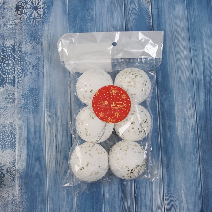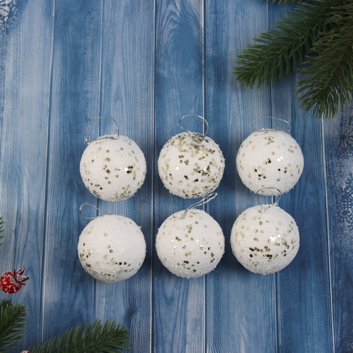 Набор шаров пластик d-5 см, 6 шт "Золотые вкрапления"
