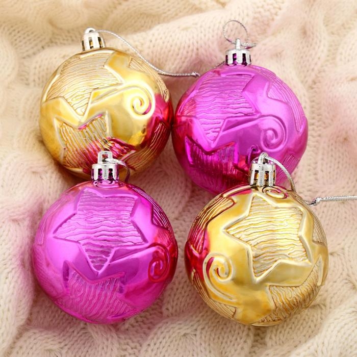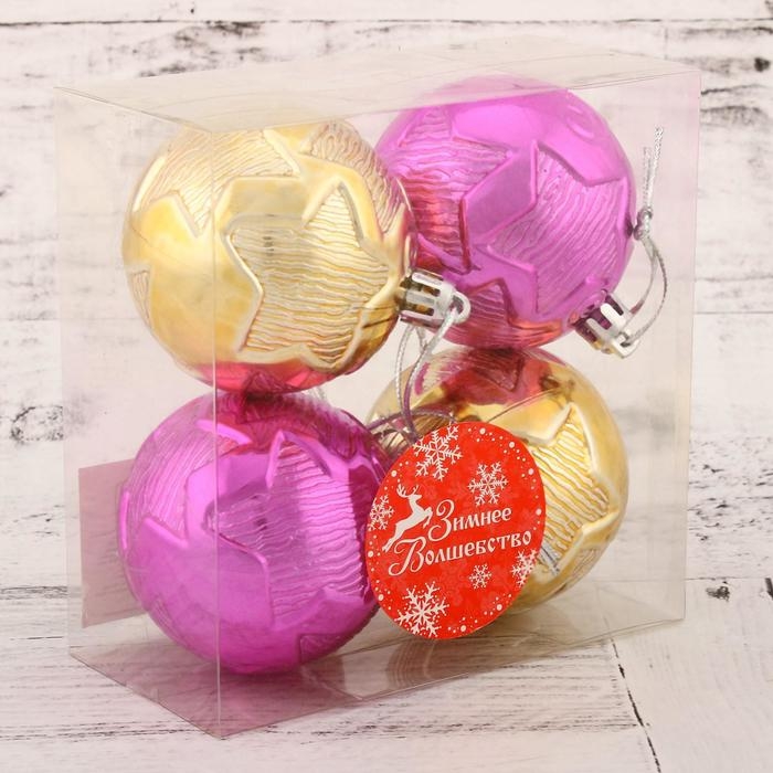 Набор шаров пластик d-6 см, 4 шт "Геометрия звёзд" золотисто-розовый