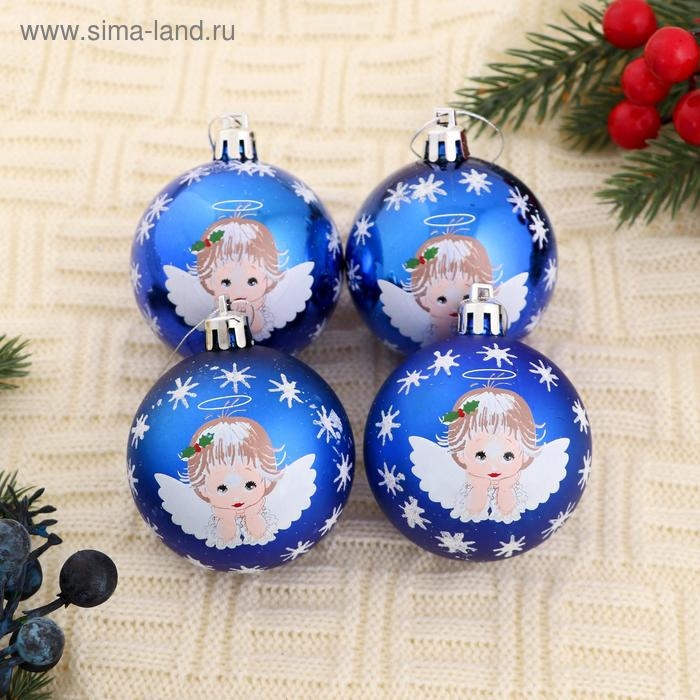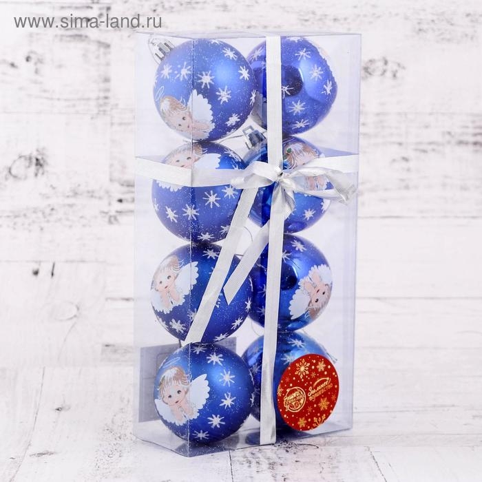 Набор шаров пластик d-6 см, 8 шт "Ангелочек" синий