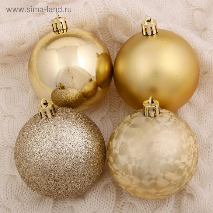 Набор шаров пластик d-7 см, 7 шт "Фланда" золото