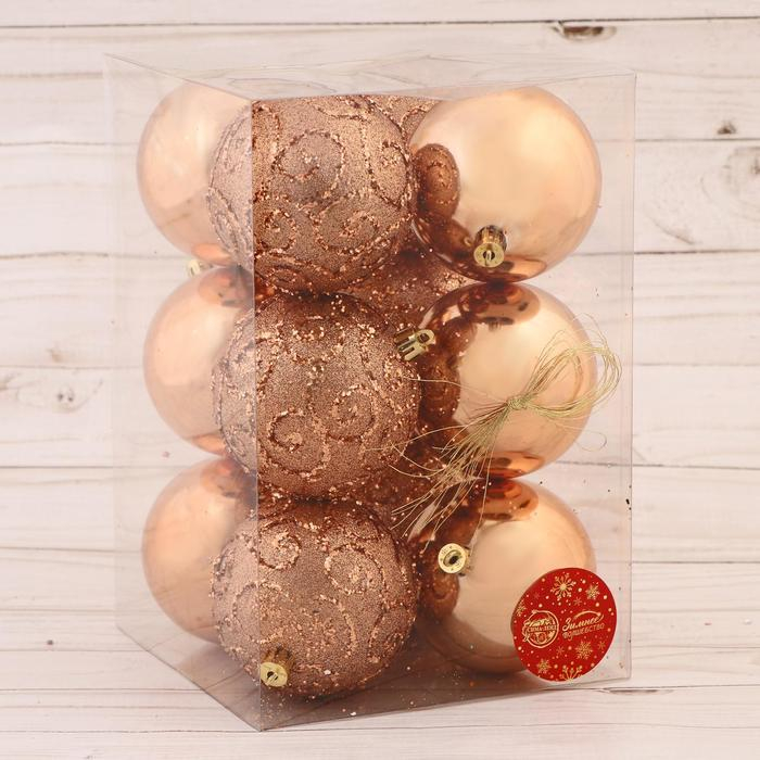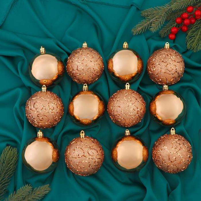 Набор шаров пластик d-8 см, 12 шт "Делия" золото