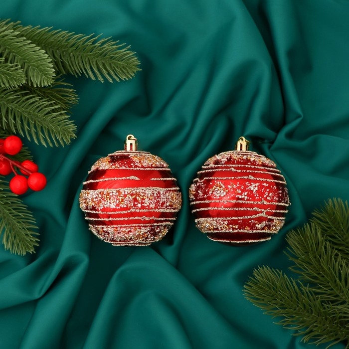 Набор шаров пластик d-8 см, 2 шт "Орбита" красный