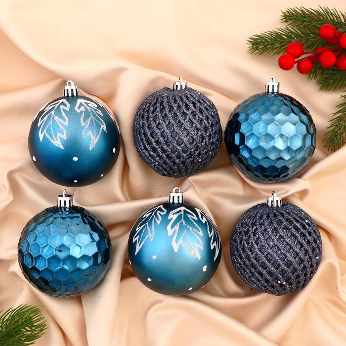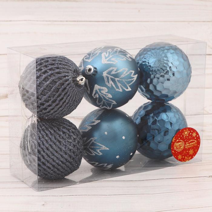 Набор шаров пластик d-8 см, 6 шт "Борра ассорти" синий