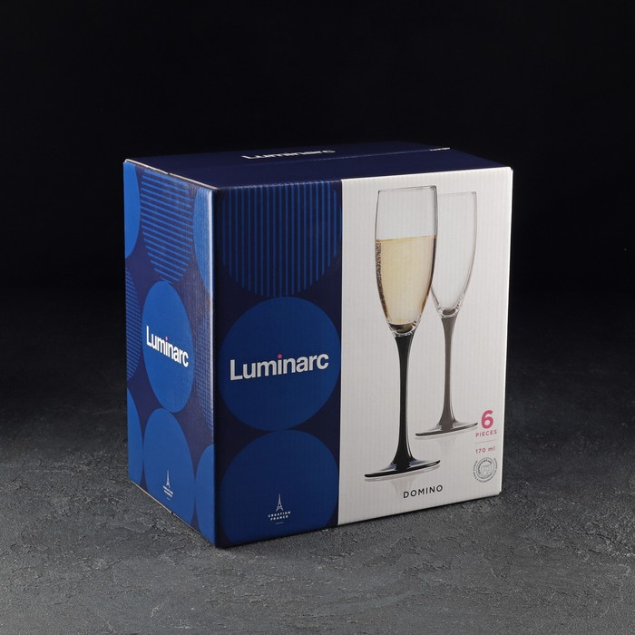 Набор стеклянных бокалов для шампанского «Домино», 170 мл, 6 шт