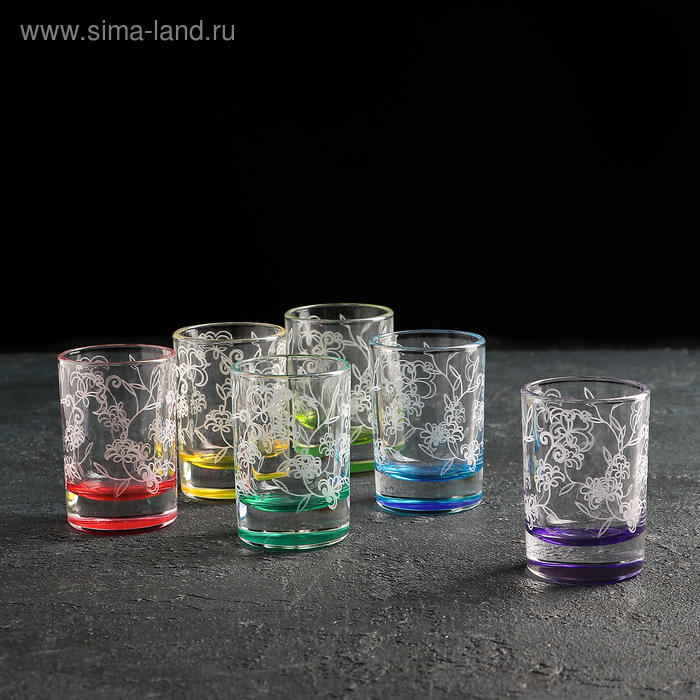 Набор стопок Рrimavera, стеклянный, 6 шт, 50 мл, гравировка, цветное дно