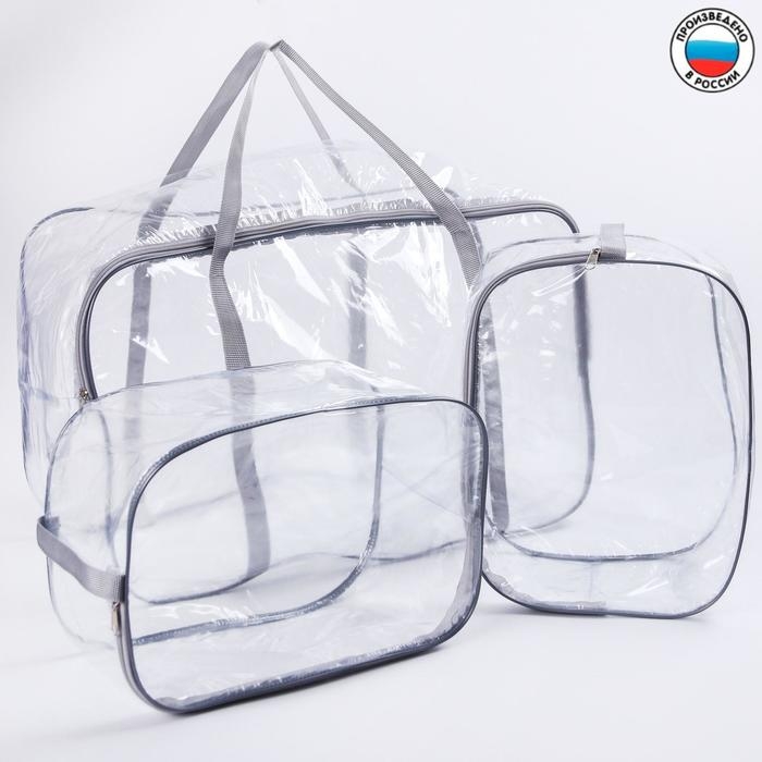 Набор сумок в роддом, 3 шт., цвет прозрачный/серый