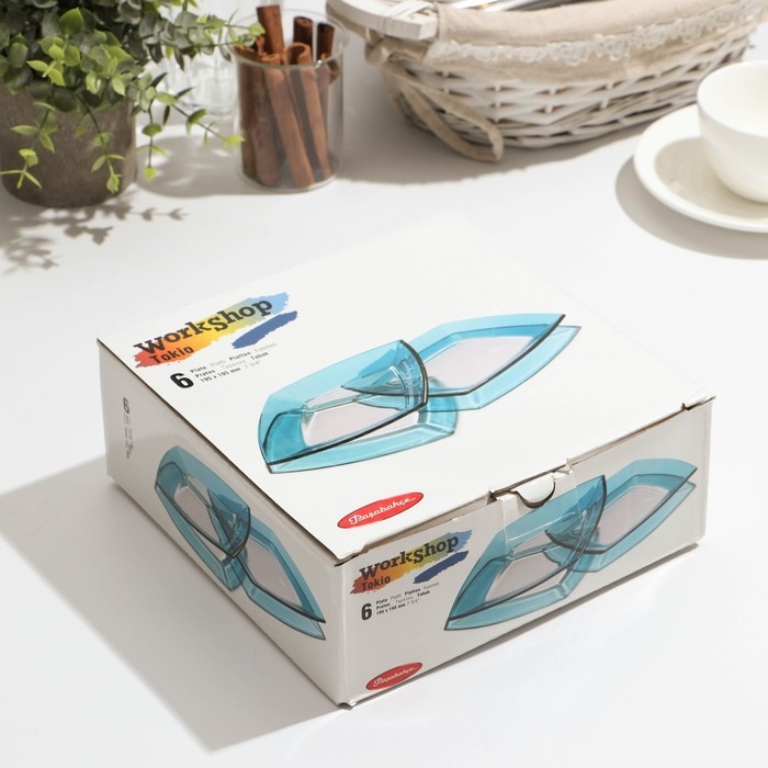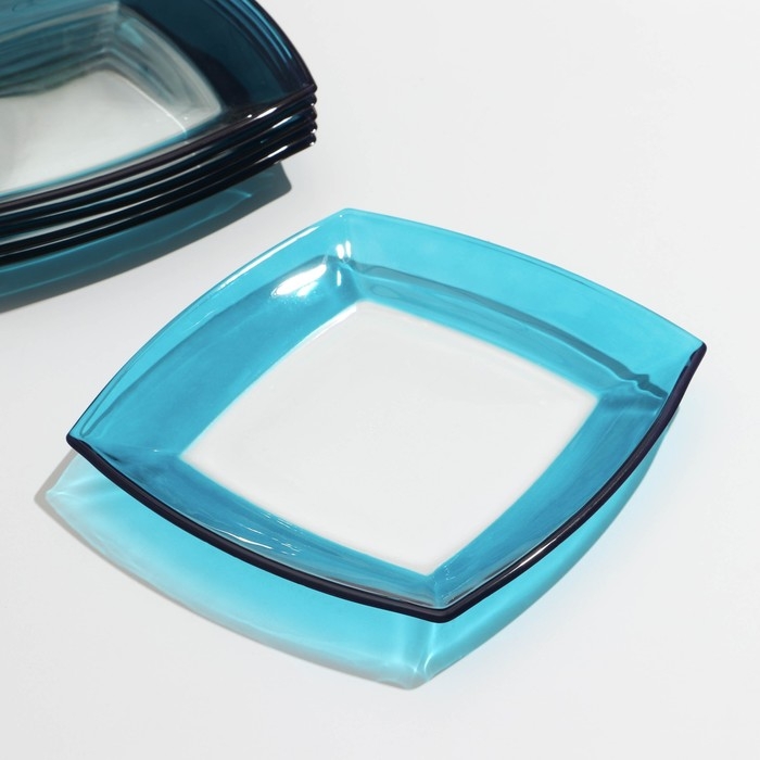 Набор тарелок стеклянный Tokio, 6 шт, 19,5 x19,5 см, цвет голубой
