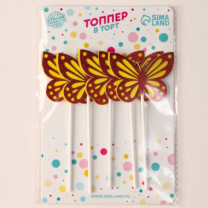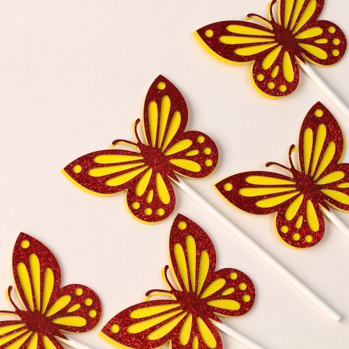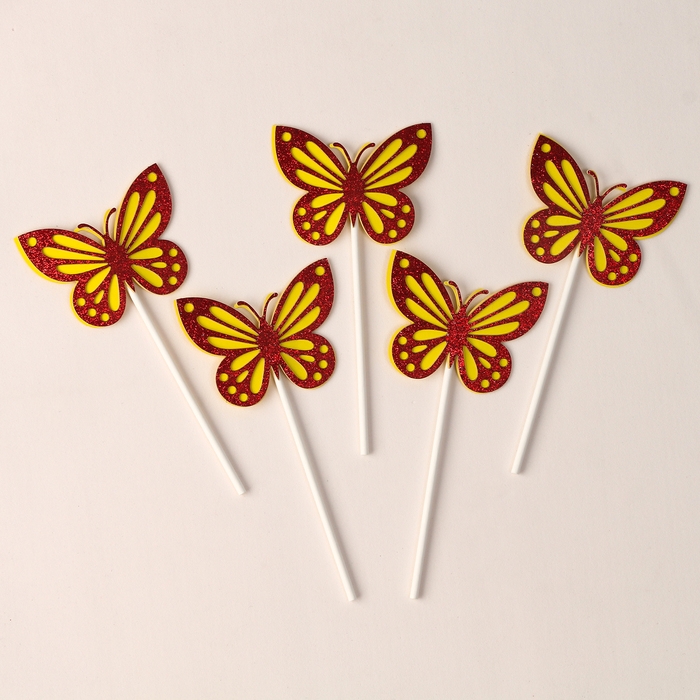 Набор топперов «Бабочки», набор 5 шт., цвет красный