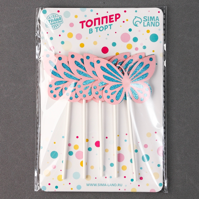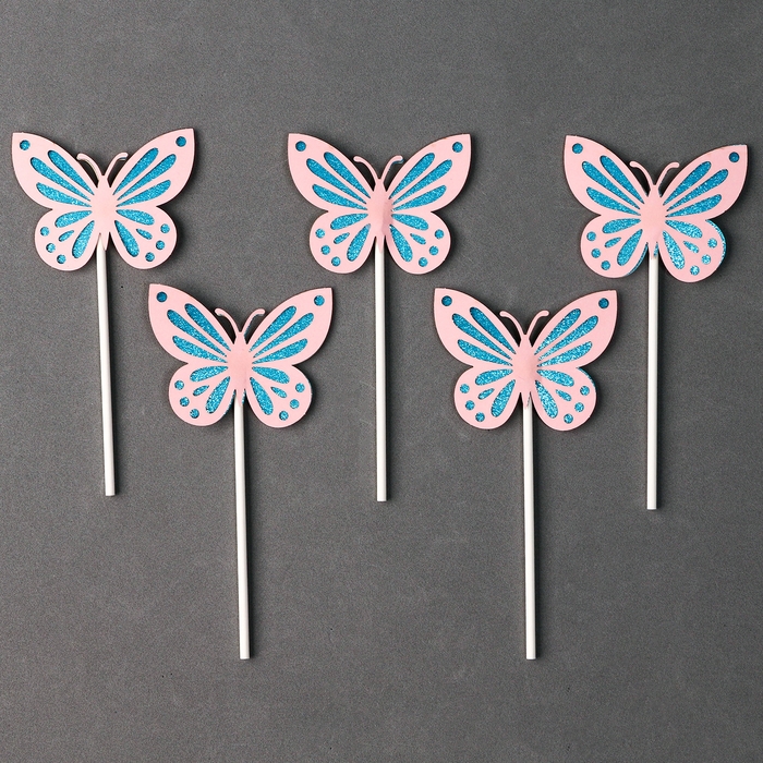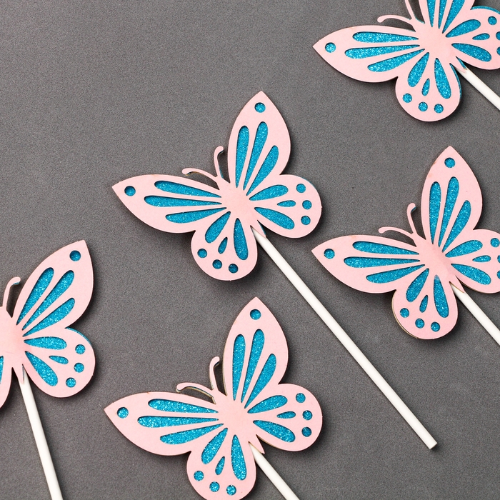 Набор топперов «Бабочки», набор 5 шт., цвет розовый