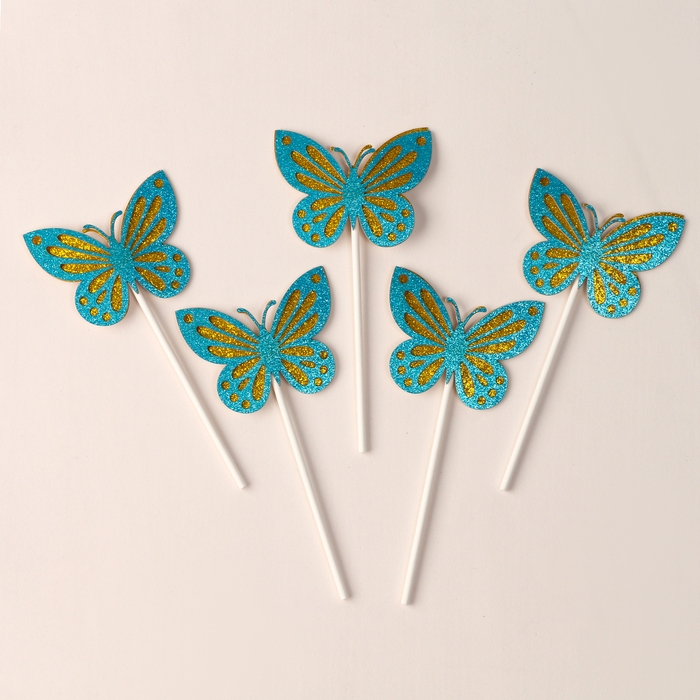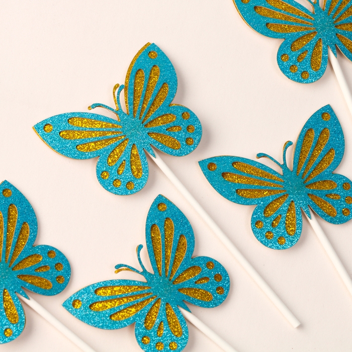 Набор топперов «Бабочки», набор 5 шт., цвет синий