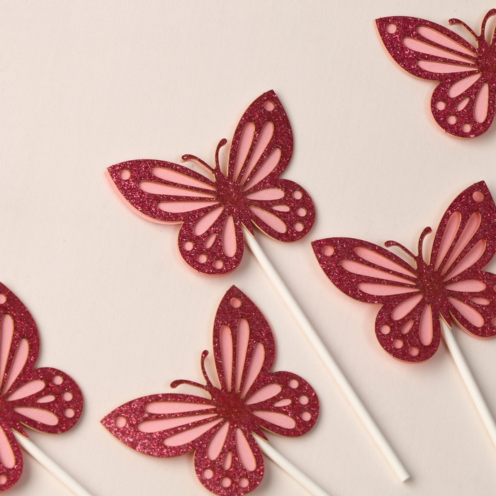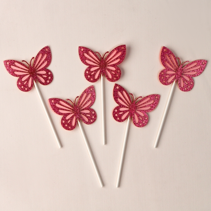 Набор топперов «Блестящие бабочки», набор 5 шт., цвет розовый