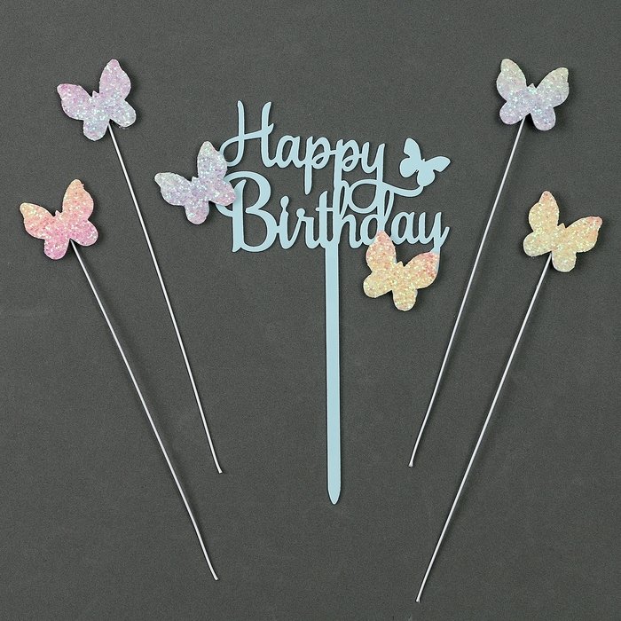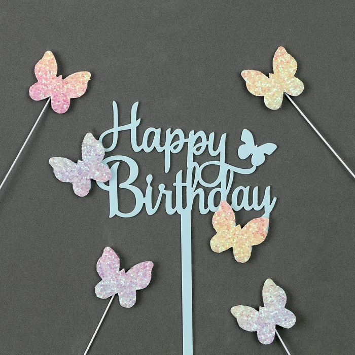 Набор топперов «С днём рождения. Бабочки», набор 4 шт., цвет голубой