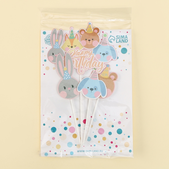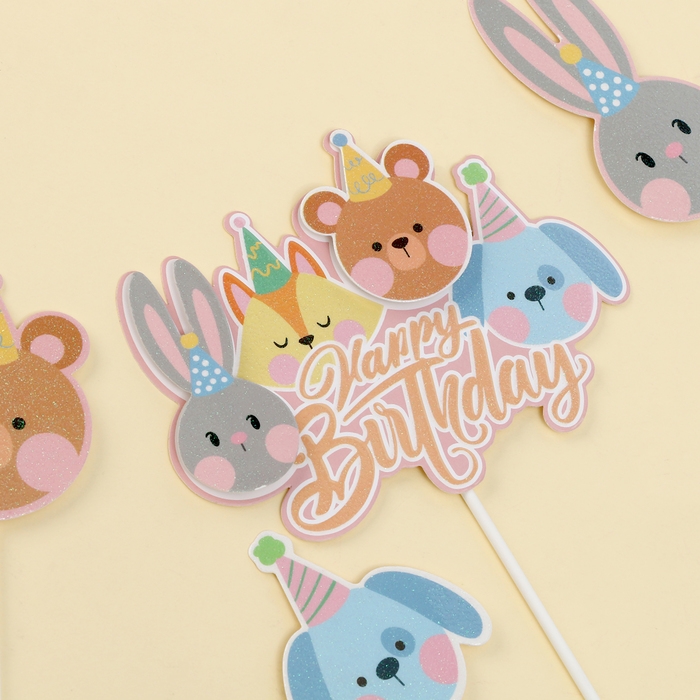 Набор топперов «С днём рождения» поможет легко и быстро украсить торт к любому дню рождения. Украшения выполнены из качественного пластика и легко устанавливаются благодаря крепкому держателю. Этот набор создаст тёплую и праздничную атмосферу.