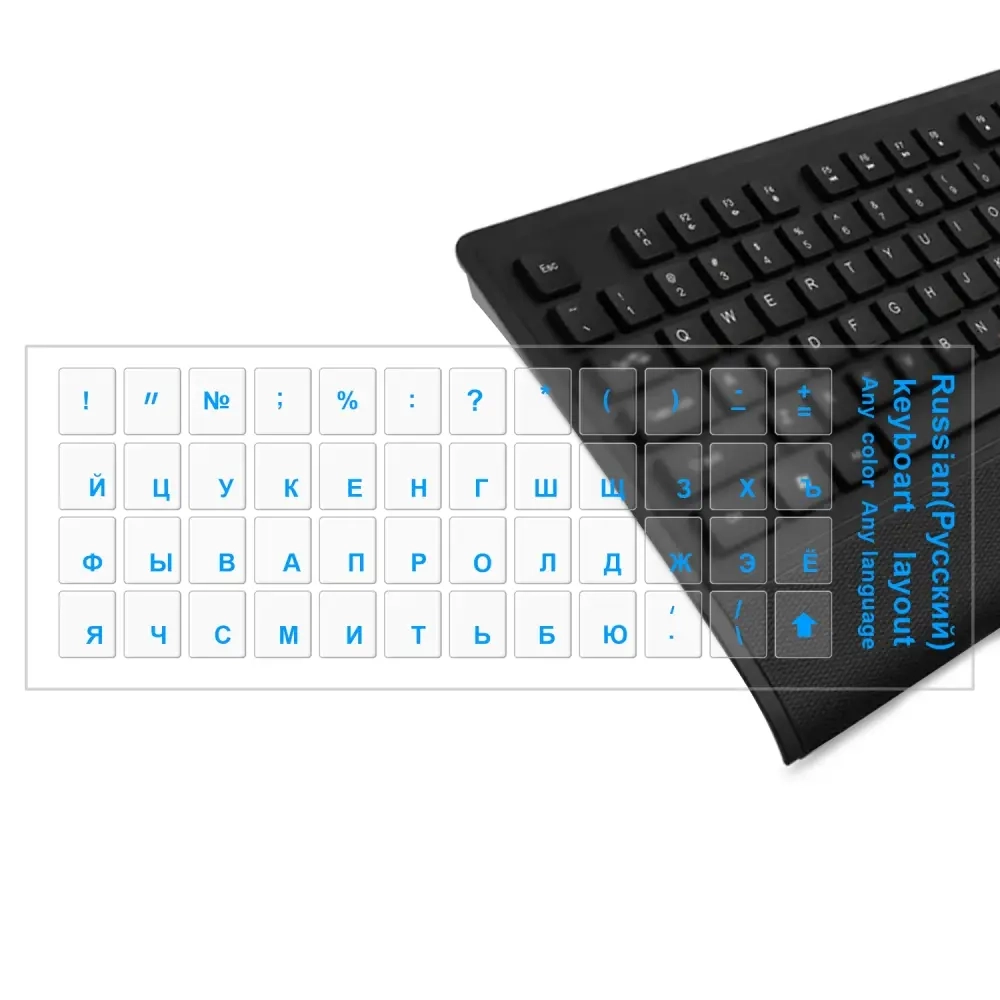 Наклейки на клавиатуру прозрачные синие буквы #6