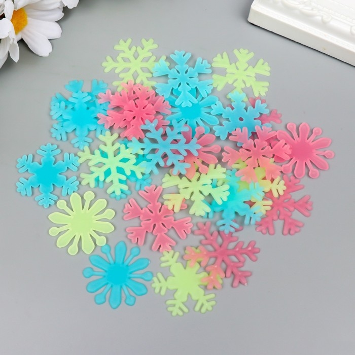 Наклейка фосфорная пластик "Снежинки" набор 20 шт 20х13 см