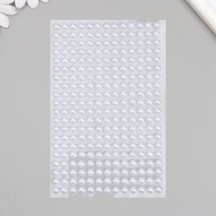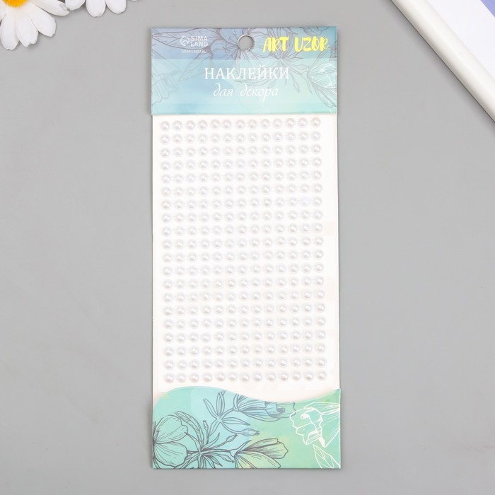 Наклейка пластик стразы "Полужемчужины" d-6 мм белый 9,4х15,5 см