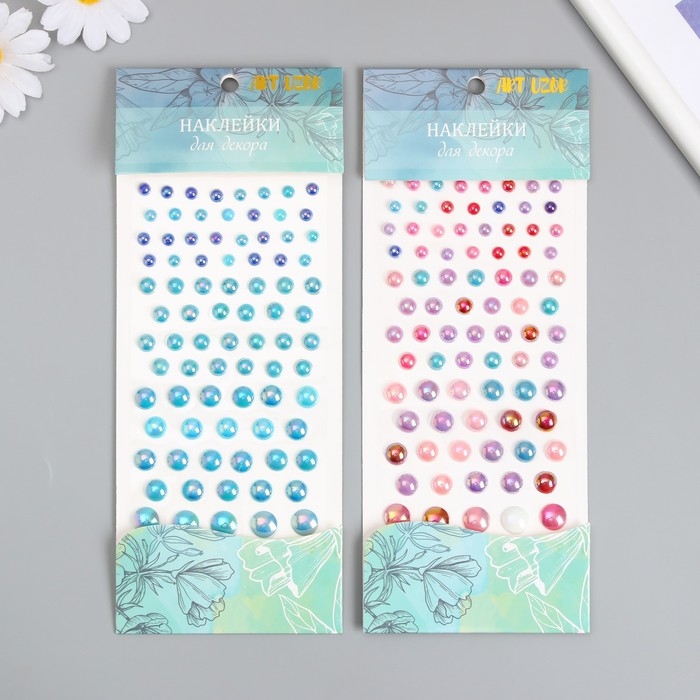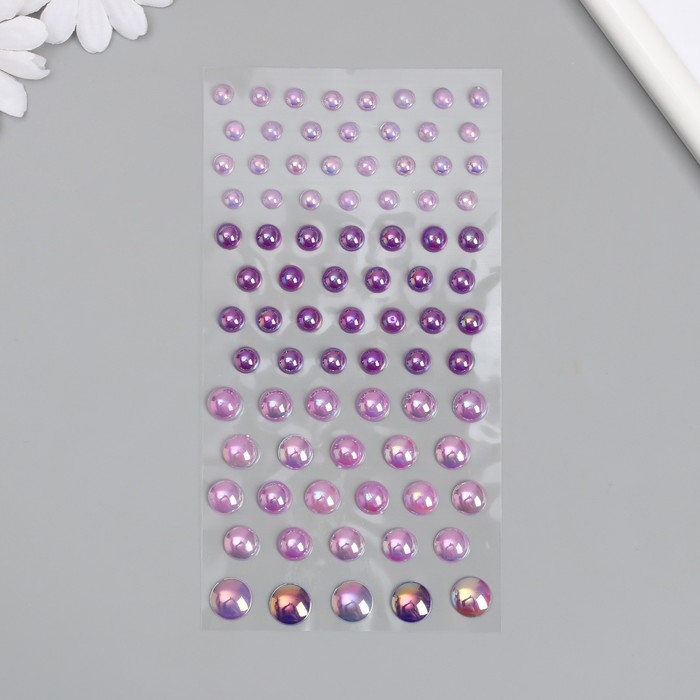 Наклейка пластик стразы "Полужемчужины разных размеров" перламутр МИКС 10х27 см