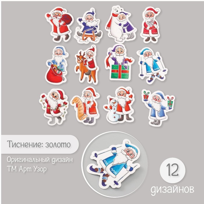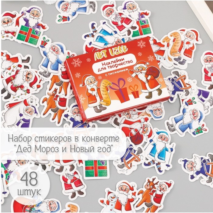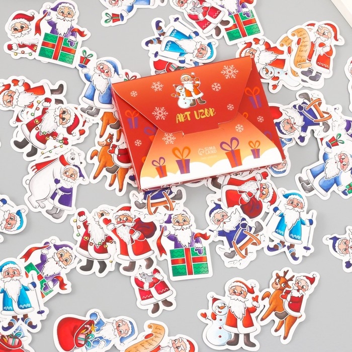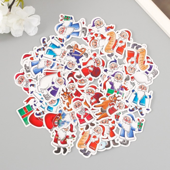 Наклейки для творчества "Дед Мороз и Новый год" тиснение серебро набор 48 шт 9х7х0,8 см