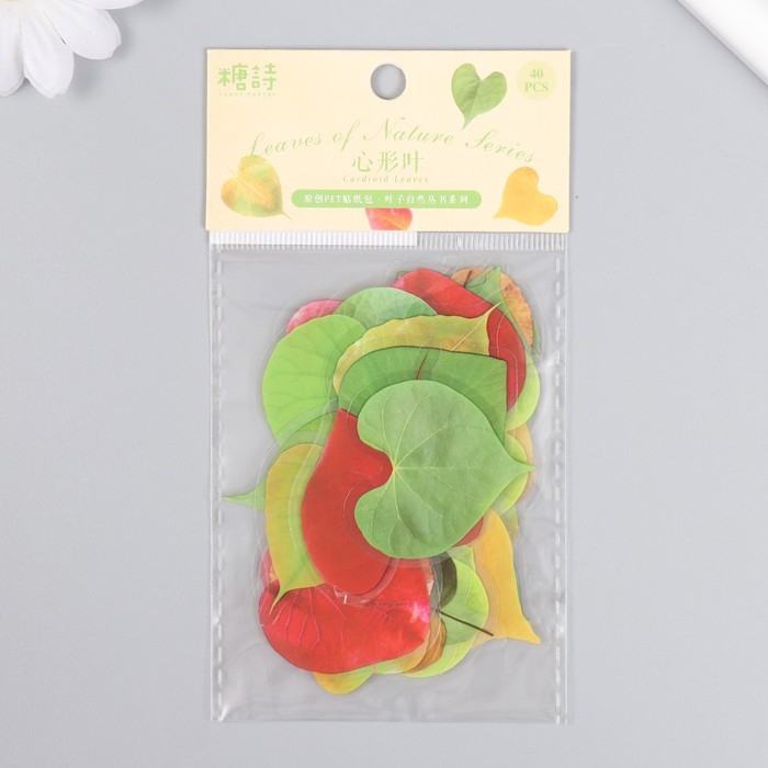Наклейки для творчества пластик "Листья в форме сердца" набор 40 шт р-р 4-5 см