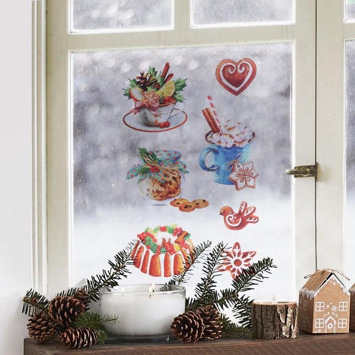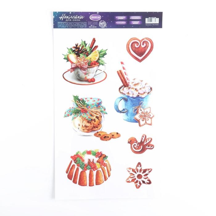 Наклейки новогодние на окна «Новогодние сладости», многоразовые, 20 х 34 см, Новый год