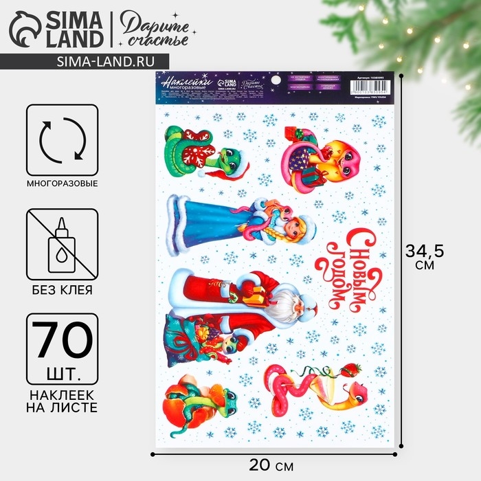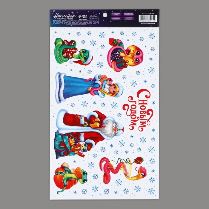 Наклейки новогодние на окна, виниловые «Змея 2025», многоразовые, 20 х 34.5 см, Новый год