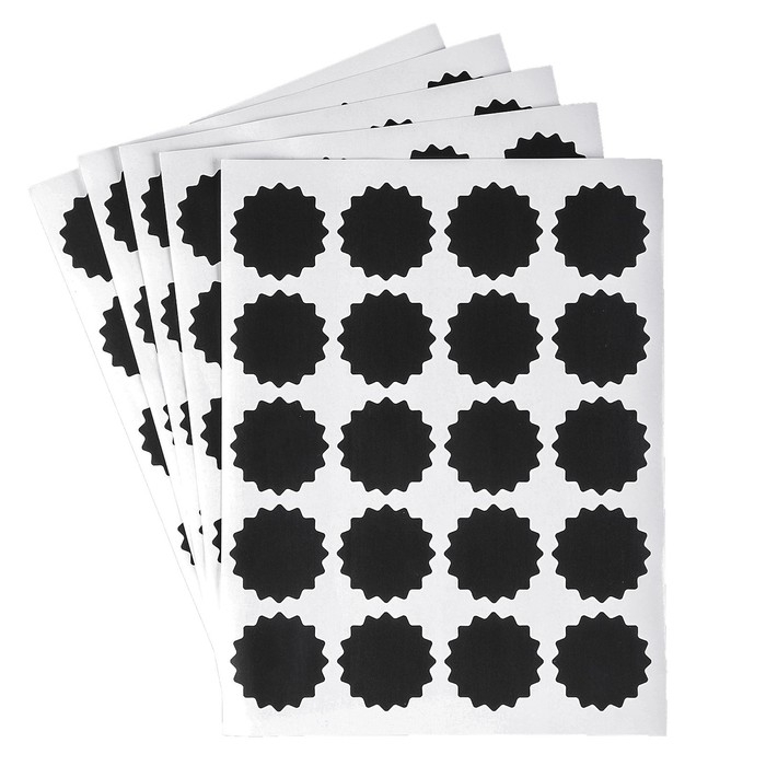 Наклейки водонепроницаемые, набор листов 5 шт., меловой маркер, диаметр 1 наклейки — 38 мм