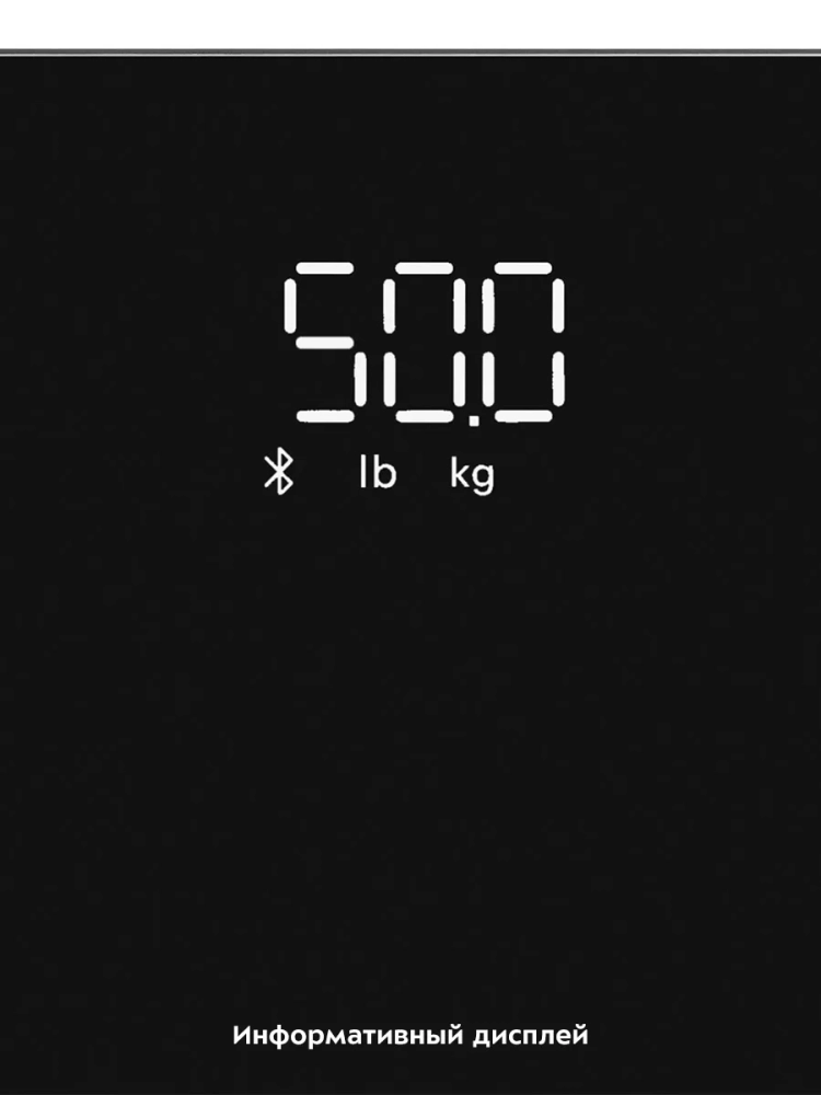 Весы оснащены жидкокристаллическим дисплеем с крупным отображением цифр, что делает их использование максимально удобным. Платформа выполнена из высокопрочного полированного стекла, а прорезиненные ножки обеспечивают дополнительную устойчивость весам и предотвращают их скольжение по полу, что гарантирует безопасность во время взвешивания. Токопроводящие электроды вмонтированы в платформу, они необходимы для проведения биоимпедансного анализа.
