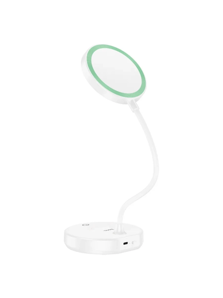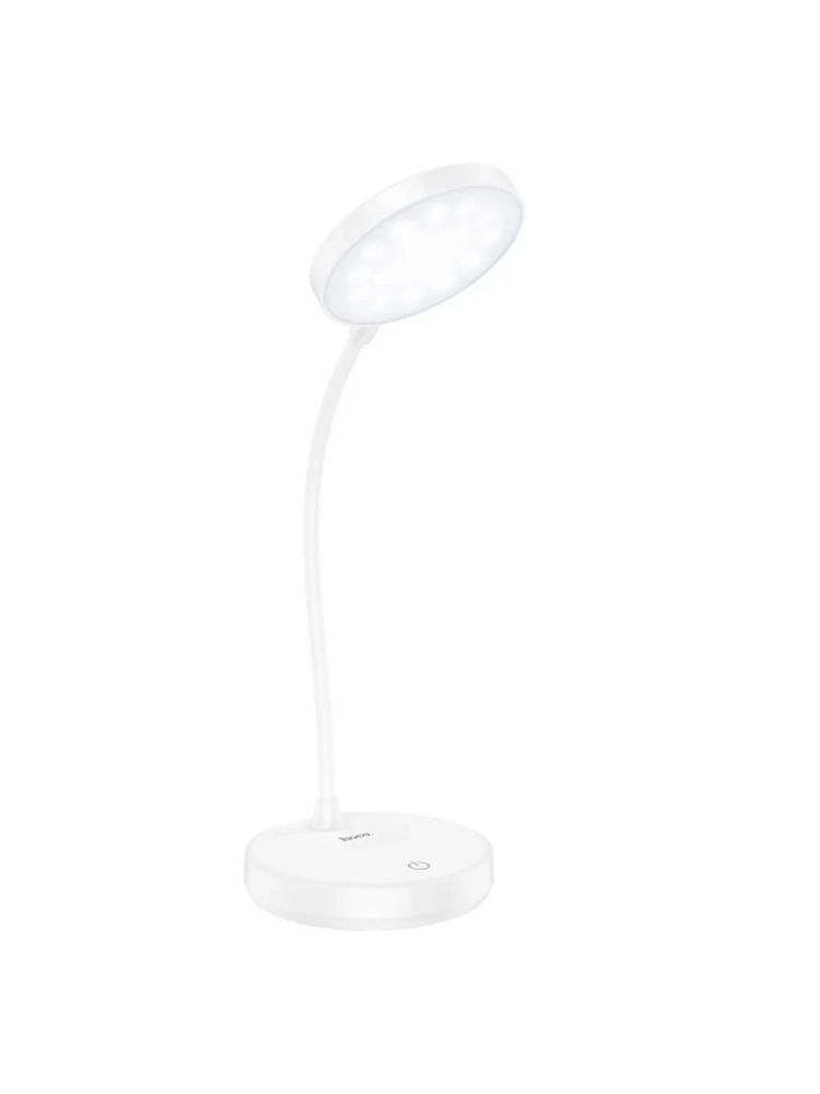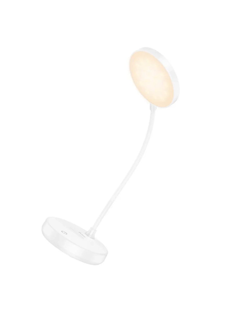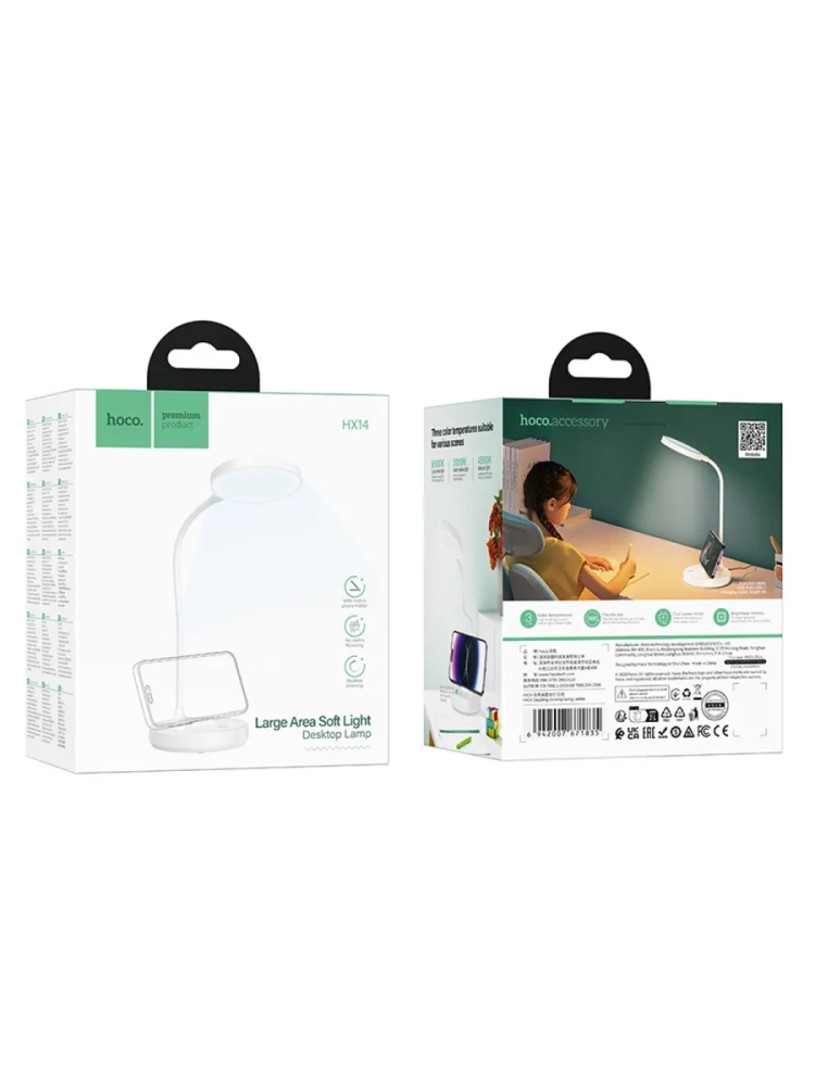 HOCO HX14 — универсальная настольная лампа с автономным питанием и гибкой настройкой освещения. Подходит для рабочего стола, прикроватной зоны, учёбы или чтения. Благодаря встроенному аккумулятору и компактным размерам её удобно брать в поездки.