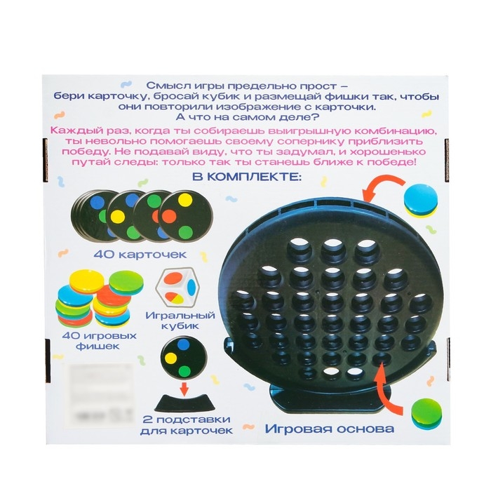 - Вам необходимо собрать комбинацию из фишек, совпадающую с изображением на карточке.