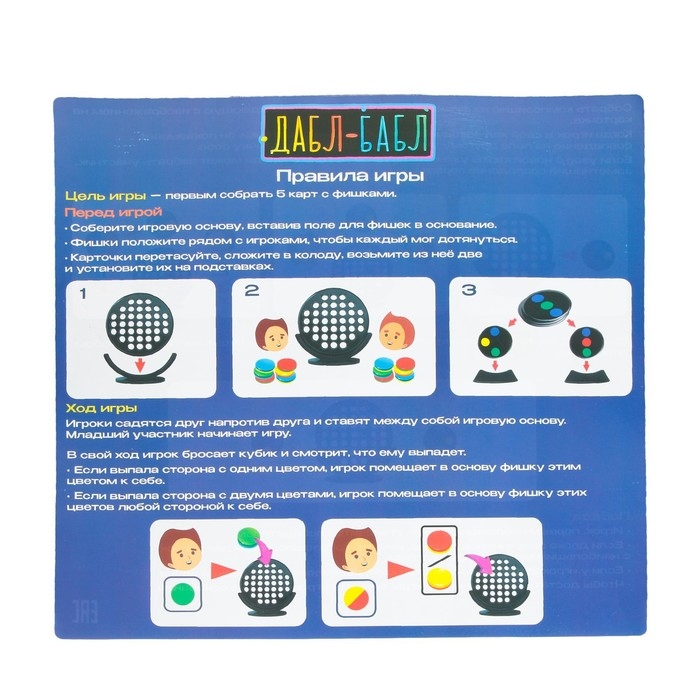 В настольной игре «Дабл бабл» вам предстоит повторять комбинации с карточек-заданий и помогать сопернику на пути к своей победе!