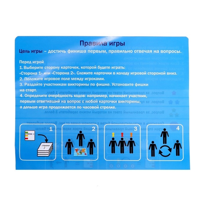 - Цель игры — добраться до финиша первым, правильно отвечая на вопросы.