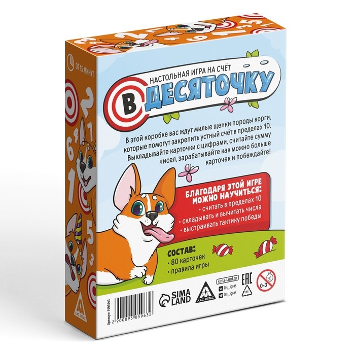 В этой коробочке вас ждут милые щенки породы корги, которые помогут закрепить устный счёт в пределах 10.