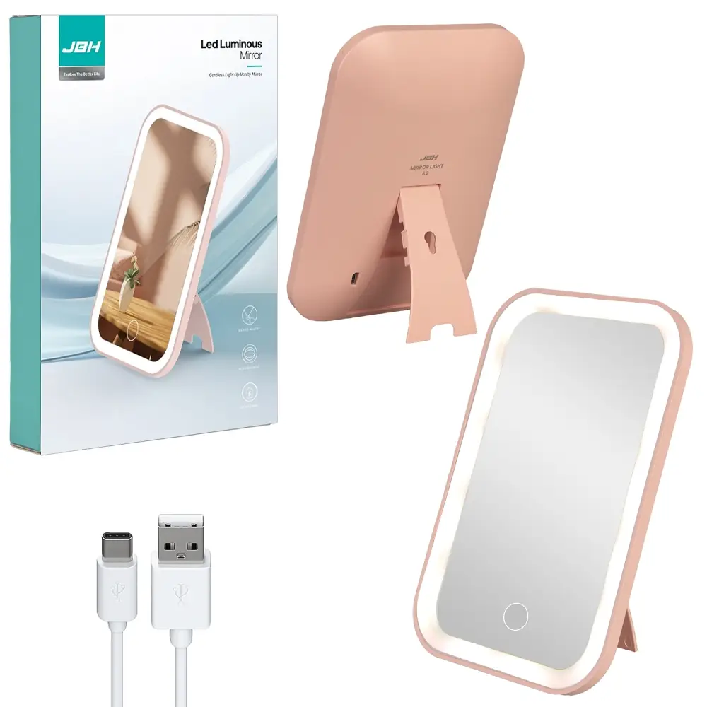 Настольное зеркало для макияжа с подсветкой A2 JBH розовое (64 шт/кор)