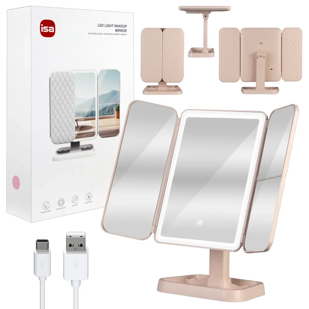 Настольное зеркало для макияжа с подсветкой ML-04 ISA розовое