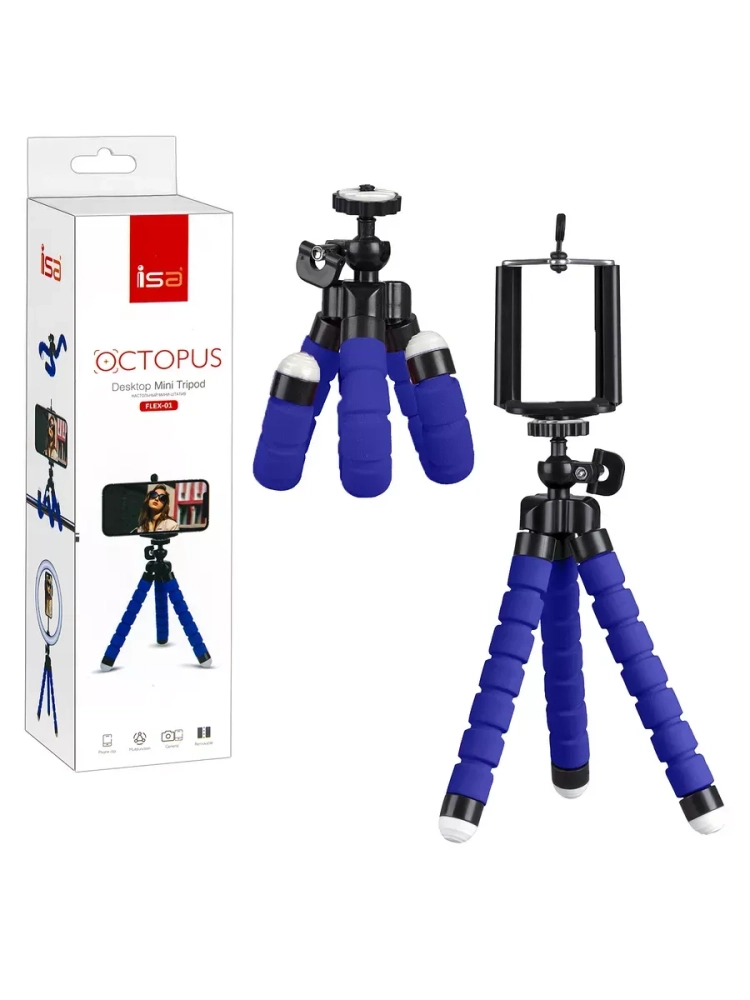 Настольный мини-штатив FLEX-01 ISA - это функциональный и надежный аксессуар для фото- и видеосъемки. Он обеспечивает устойчивость и удобство использования, позволяя снимать качественные фотографии и видео. Трипод изготовлен из прочного алюминиевого сплава и ABS пластика, что гарантирует его долговечность и надежность. Максимальная нагрузка составляет 1 кг, а вес самого штатива - всего 0,58 кг. Особенностью данного гибкого штатива является его конструкция. Это позволяет установить смартфон на стол, закрепить его на трубе, ручке двери или любой другой поверхности. Головка треноги оснащена шаровым типом крепления и совместима с винтом под штативное гнездо камеры 1/4". Это обеспечивает возможность использования с различными моделями фото- и видеокамер. Три гибкие ножки позволяют наклонять головку вверх на 90 градусов, поворачивать ее на 360 градусов и наклонять вниз на 90 градусов. Максимальная высота съемки составляет 17 см, а минимальная - 7,5 см. Настольный мини-штатив FLEX-01 станет незаменимым помощником для любителей и профессионалов в области фотографии и видеосъемки.