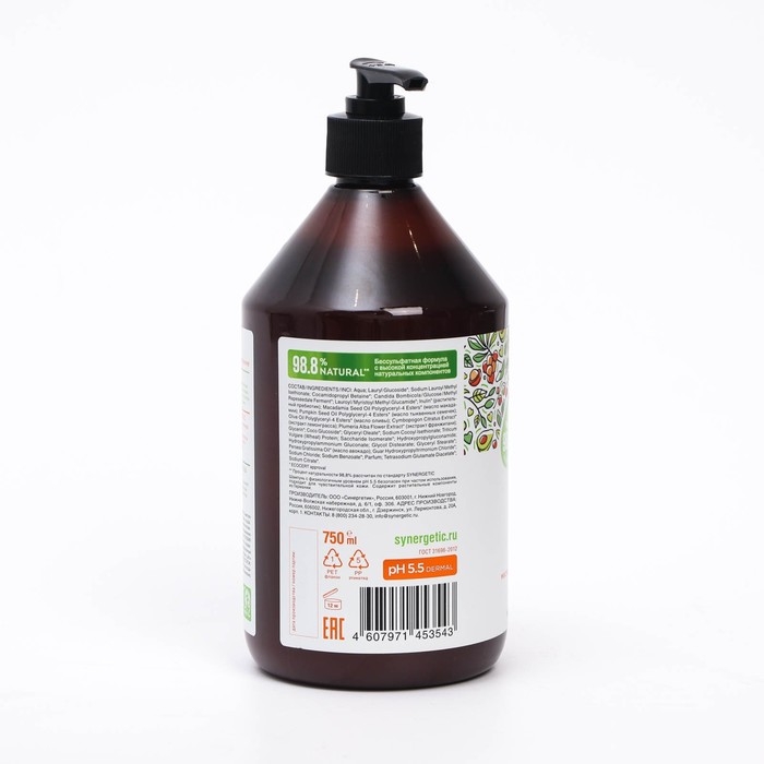 Натуральный бессульфатный шампунь SYNERGETIC Максимальное питание и восстановление , 0,75 мл