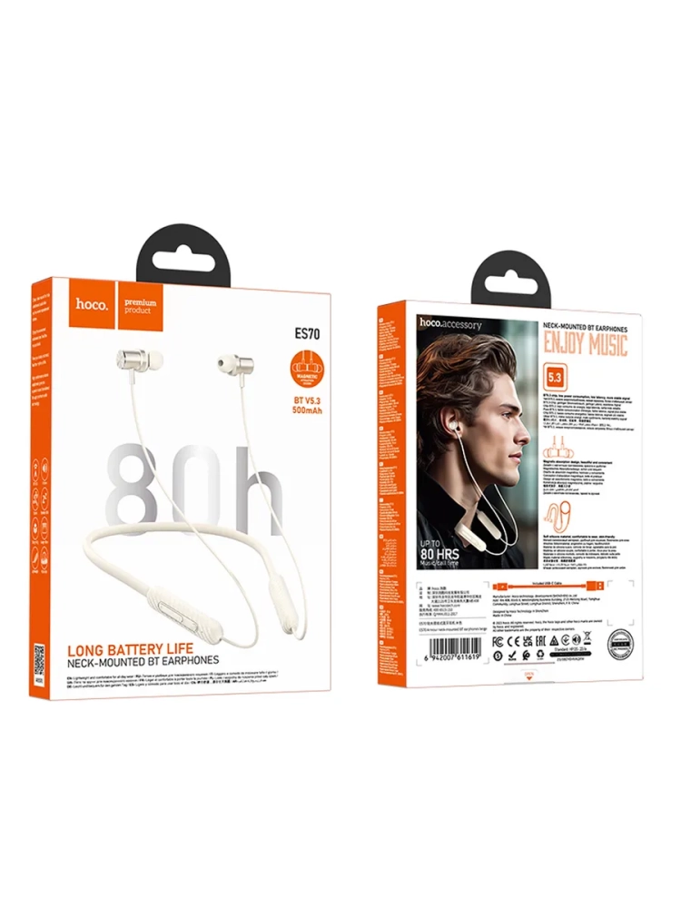 Беспроводные наушники Hoco ES70 Armour с шейным ободом — это стильное и удобное решение для активного образа жизни. Оснащены современным Bluetooth 5.3 и чипом JL7003, обеспечивают стабильное соединение с любыми устройствами: смартфонами, планшетами, ноутбуками. Высокая емкость аккумулятора 500 мАч гарантирует до 80 часов непрерывной работы, что делает модель идеальной для длительных поездок, тренировок и ежедневного использования.