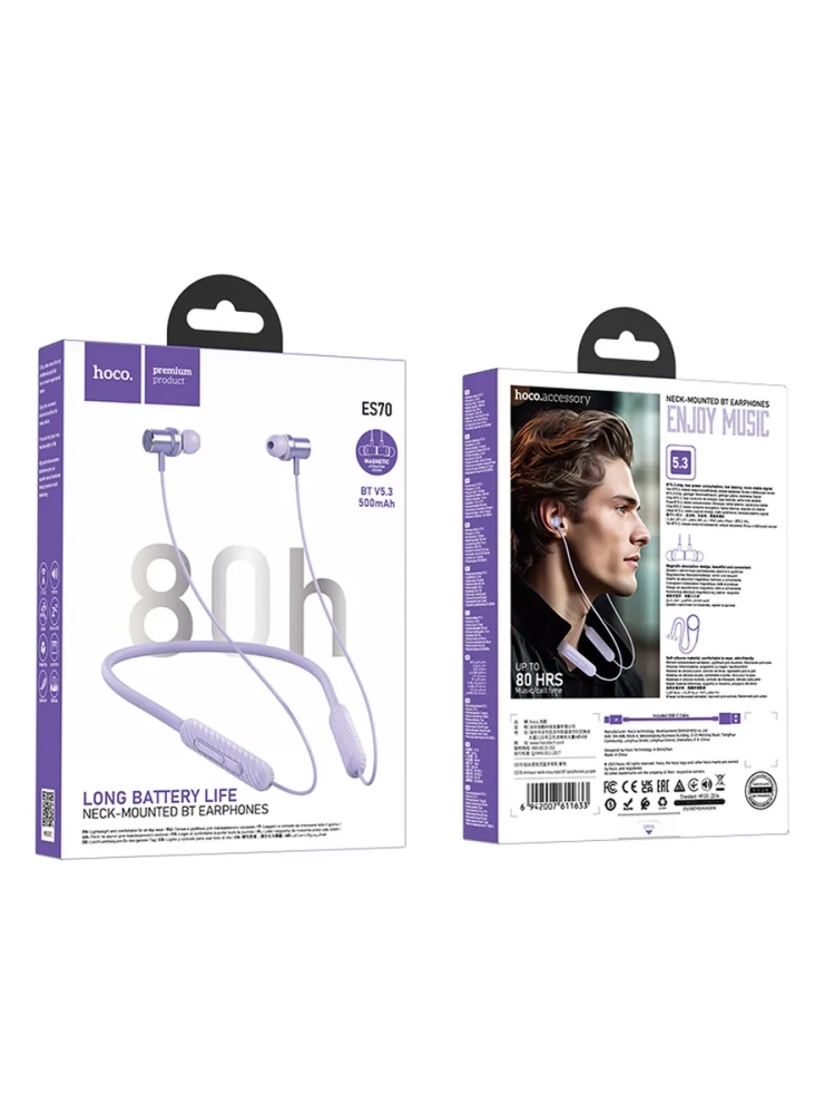 Беспроводные наушники Hoco ES70 Armour с шейным ободом — это стильное и удобное решение для активного образа жизни. Оснащены современным Bluetooth 5.3 и чипом JL7003, обеспечивают стабильное соединение с любыми устройствами: смартфонами, планшетами, ноутбуками. Высокая емкость аккумулятора 500 мАч гарантирует до 80 часов непрерывной работы, что делает модель идеальной для длительных поездок, тренировок и ежедневного использования.