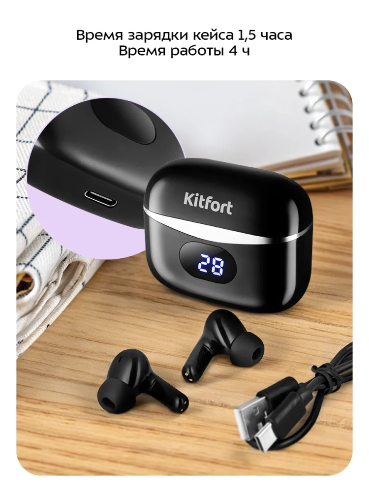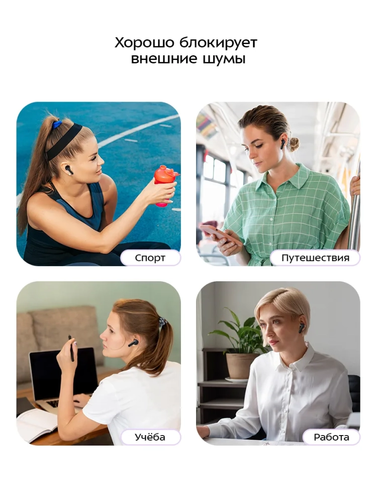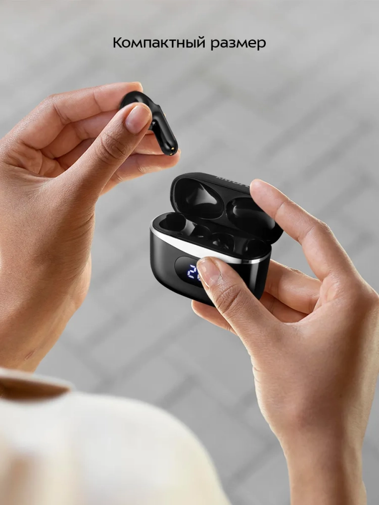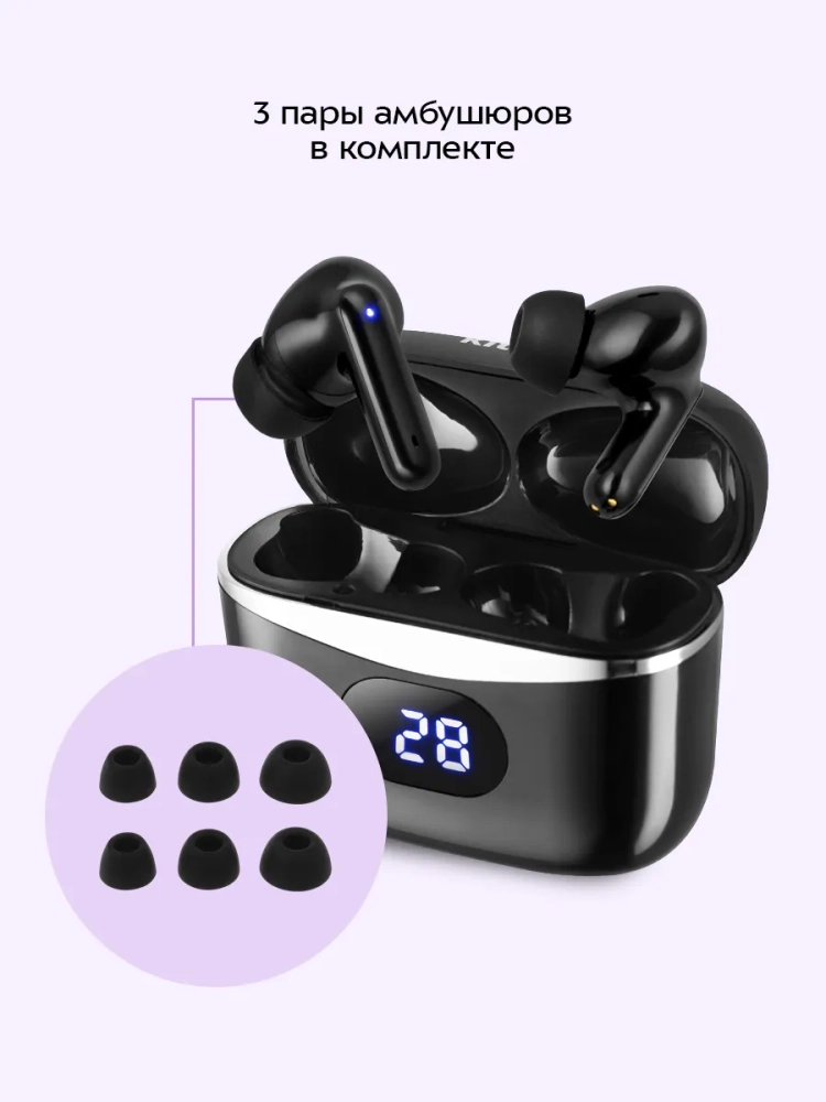 Встроенный микрофон позволяет вам использовать наушники для мобильных разговоров или записи аудиосообщений. Беспроводные наушники соединяются с вашим устройством с помощью Bluetooth 5.3.