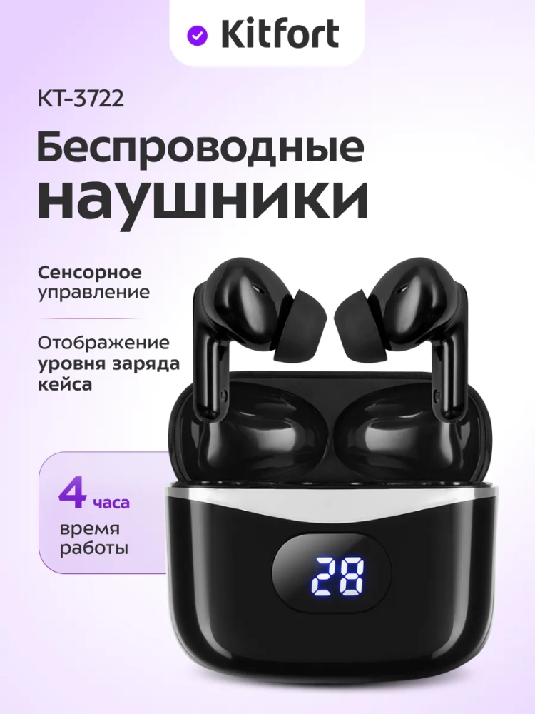 Беспроводные наушники Kitfort КТ-3722 позволят вам с удобством и комфортом слушать музыку, при этом провода не будут мешать и ограничивать движения, что особенно удобно при занятии спортом или любой другой активной деятельности. Вам не нужно использовать другое устройство, чтобы переключать аудиофайлы и ставить их на паузу, а также останавливать и снова запускать воспроизведение, менять громкость или отвечать на звонок, ведь все управление сенсорное и осуществляется касанием специальной зоны на наушниках.