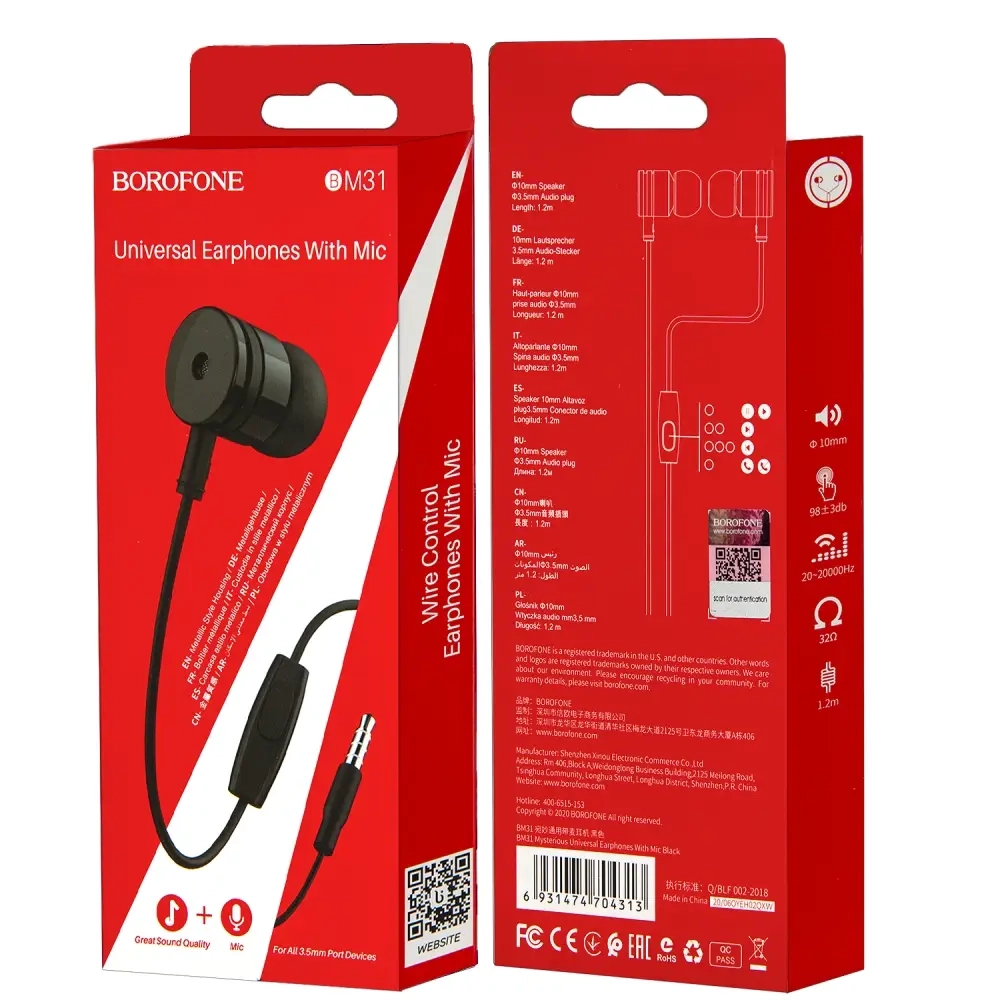 Наушники BM31 BOROFONE черные