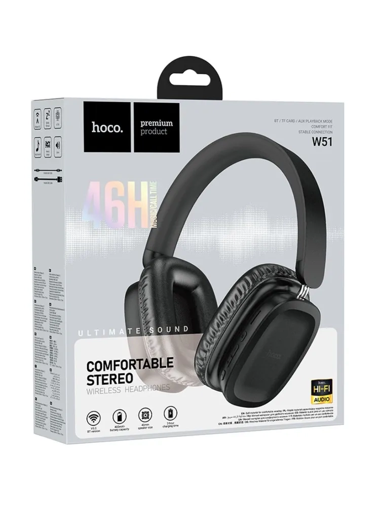Наушники беспроводные большие Hoco W51 – это превосходное сочетание стильного дизайна, высокого качества звука и передовых технологий. Они идеально подходят для использования с телефонами, планшетами, компьютерами и другими устройствами, поддерживающими Bluetooth. Благодаря проводному и беспроводному режимам работы, вы сможете наслаждаться музыкой в любой ситуации. Просто подключите наушники к телефону или планшету через AUX разьем или Bluetooth, и вы сразу ощутите качество звука на новом уровне. Наушники Hoco W51 Air Max Черные оснащены качественным микрофоном, который позволит вам комфортно общаться по телефону или проводить видеоконференции. Благодаря технологии шумоподавления, вы сможете наслаждаться чистым звуком без посторонних шумов.Эти наушники имеют большой аккумулятор, который обеспечит длительное время работы без необходимости зарядки. Вы сможете наслаждаться своей любимой музыкой или проводить звонки до 46 часов без перерыва. Это наушники, которые идеально подойдут как для взрослых, так и для детей. Они имеют удобную конструкцию, которая позволит вам наслаждаться музыкой в любой позе. Благодаря полноразмерным амбушюрам, они плотно прилегают к голове, обеспечивая максимальный комфорт.Эти наушники поддерживают различные форматы аудиофайлов, включая MP3 и WAV, что позволит вам наслаждаться качественным звуком в любых жанрах музыки. Благодаря встроенному усилителю басов, вы сможете наслаждаться глубоким и мощным звучанием.Не упустите возможность приобрести эти превосходные наушники!