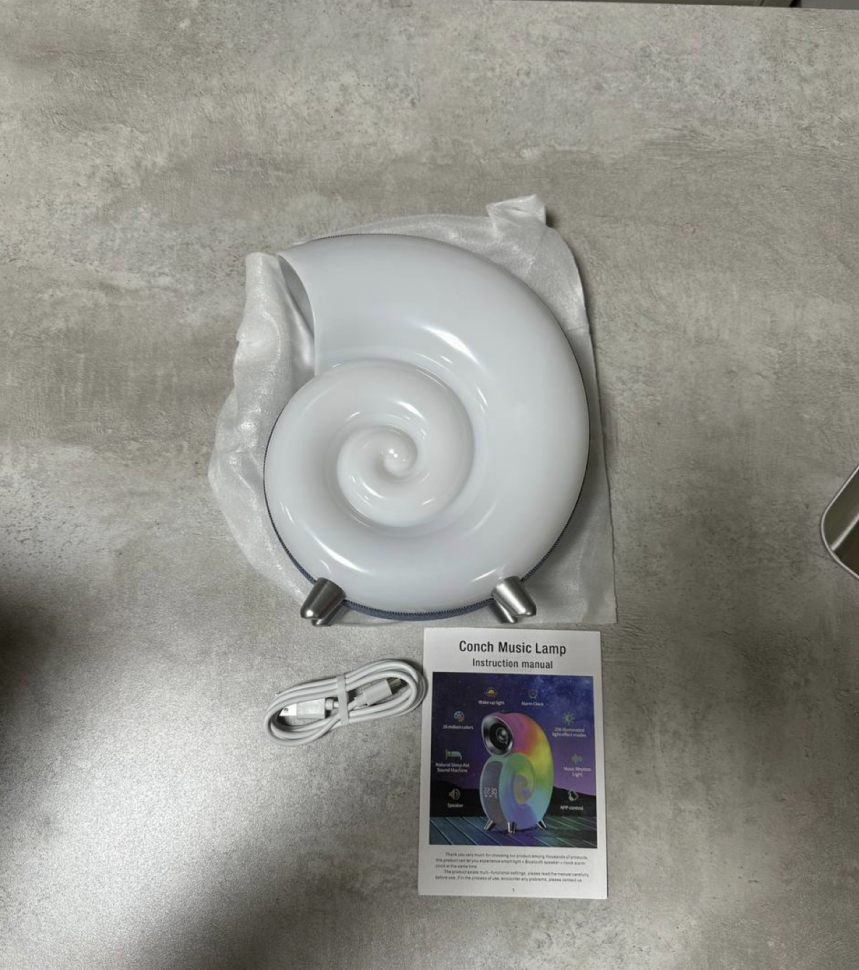 Основные функции ночника: цветная и белая подсветка с управлением со смартфона, встроенная bluetooth колонка, встроенный аккумулятор, 8 встроенных природных мелодий, умные часы будильник.