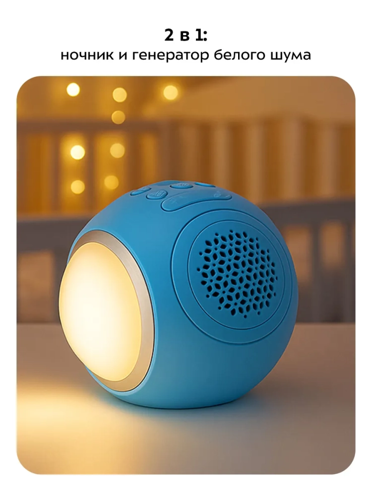 Белый шум — это фоновый звук, в котором есть высокие, средние и низкие частоты. Они распределены равномерно и звучат без каких-либо изменений громкости. Использование белого шума позволит приглушить другие не слишком громкие, но неравномерные звуки, такие как разговоры или шум с улицы. За счет этого белый шум способствует снижению уровня стресса и утомления и улучшает концентрацию внимания, а также помогает расслабиться перед сном. Однако не рекомендуется использовать прибор слишком часто, чтобы избежать формирования привычки засыпать под белый шум.