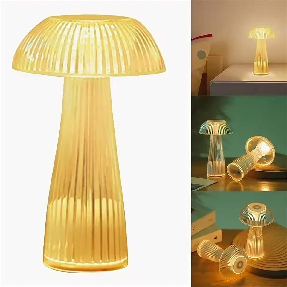 1.Дизайн абажура уникальной формы: Креативно разработанный акриловый абажур этой лампы в виде гриба-медузы сочетает в себе как декоративные, так и функциональные элементы, улавливая проекции теплого света и узоры формы из сферы светодиодного освещения.