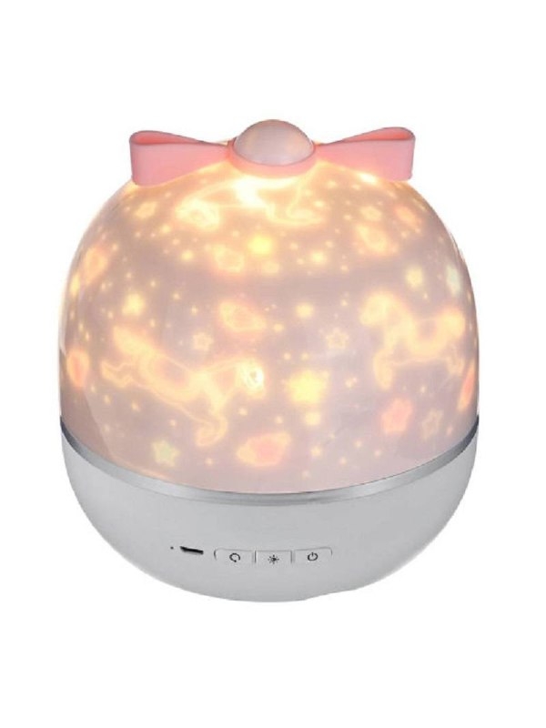 Хотели бы засыпать под звездным небом? Это теперь возможно, не выходя из дома. Ночник в сочетании с проектором позволяет наслаждаться сказочной атмосферой прямо в вашей спальне.Его можно использовать отдельно, как ночник и в качестве проектора. В комплекте 6 вариантов проекций: космос, океан, день рождения, единороги, звезды, новый год. Функция вращения и приятная колыбельная мелодия создаст успокаивающую обстановку для малышей. Он работает от сети через USB-кабель (входит в комплект). Рекомендуем включать через адаптер от мобильного телефона с выходом 1A, 5В. Ночник-проектор способен работать без подзарядки до 4-х часов. В качестве источника света в устройстве используются светодиодные лампочки.Зарядите батарею полностью перед применением. Снимите крышку, выберите изображение для проекции и положите внутрь, накройте крышкой и ночник-проектор готов к использованию.