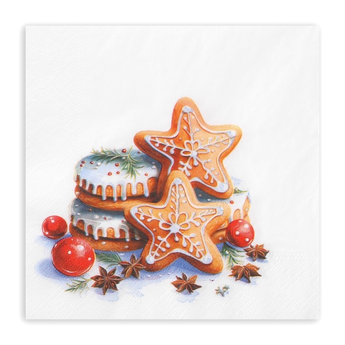 Новогодние салфетки бумажные Лилия «Медовые пряники», 2 слоя, 33х33 см, 20 шт