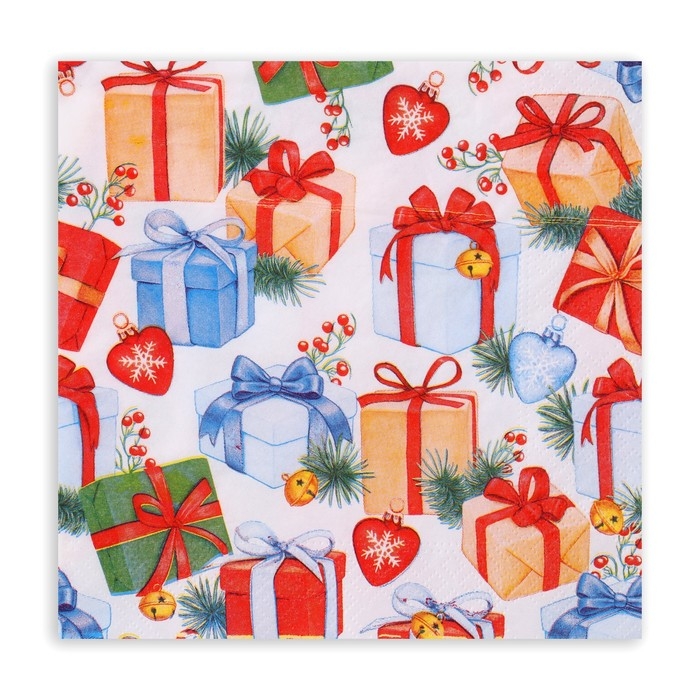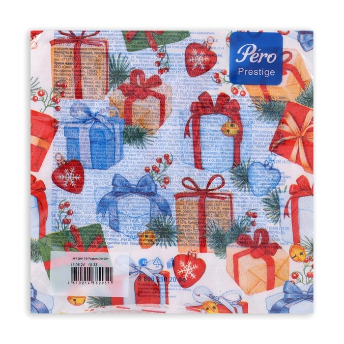 Новогодние салфетки бумажные Pero Prestige «Подарки», 3 слоя, 33х33 см, 20 шт
