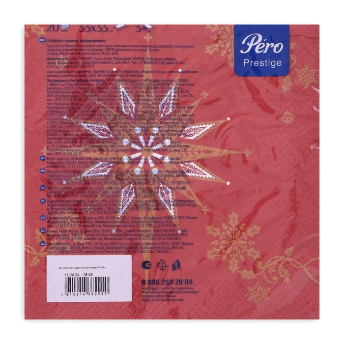 Новогодние салфетки бумажные Pero Prestige «Рождественская звезда», 3 слоя, 33х33 см, 20 шт