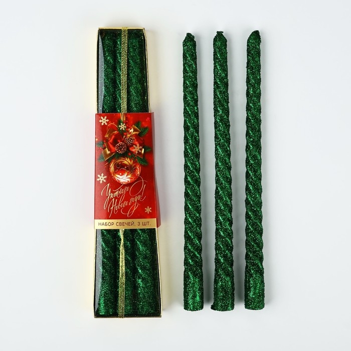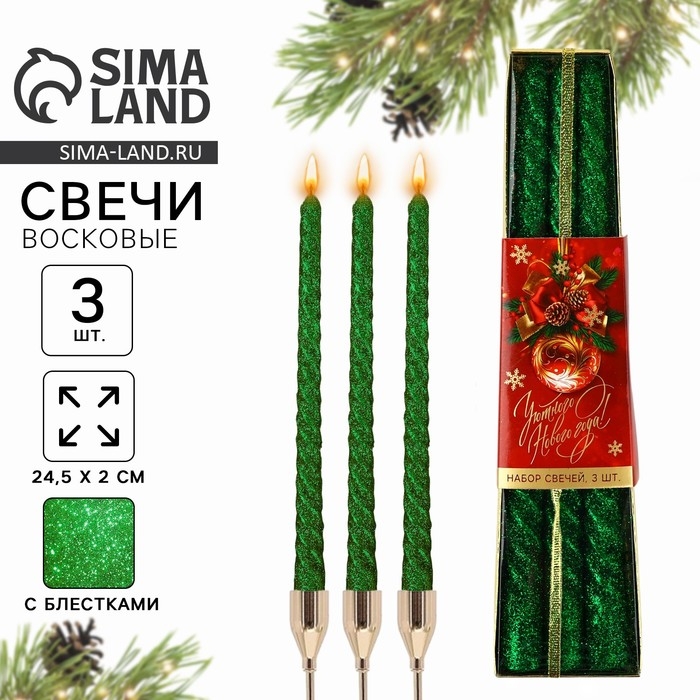Новогодние свечи витые «Новый год: Уютного нового года» 3 шт